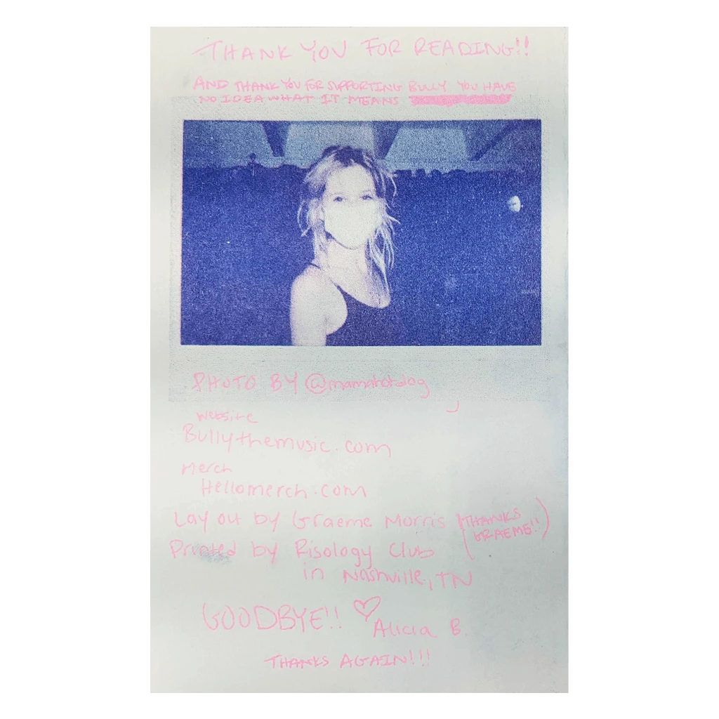 Alicia collaborated with Graeme Morris from Risology Club in Nashville,TN to make a riso zine compiled of pages straight out of her notebook throughout the writing process of Sugaregg. The zine consists of first drafts of lyrics, mixing notes, set lists, photos of the tracking process and more 🙂