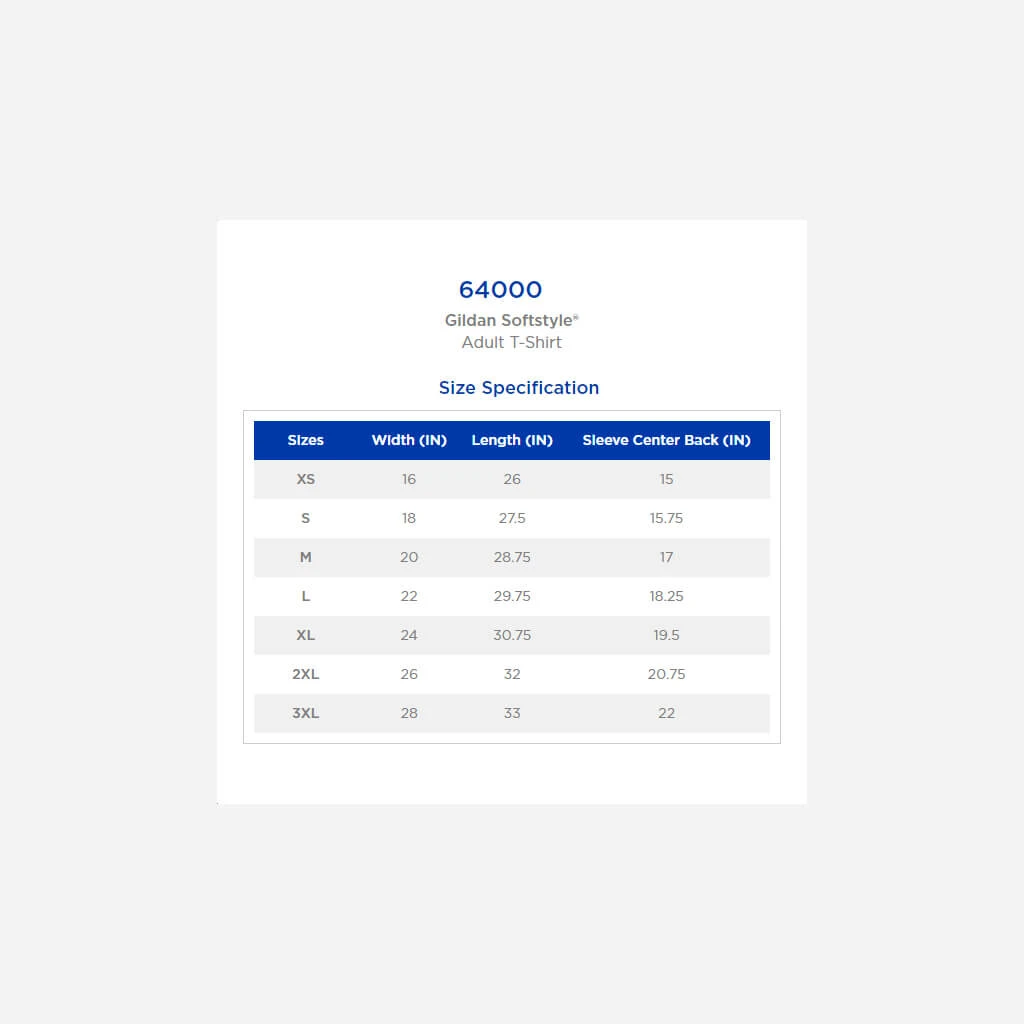 Printed on Gildan 100% Cotton.