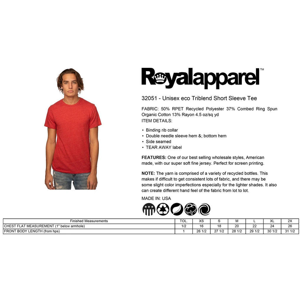 Printed on Royal Apparel or Bella+Canvas. Please see sizing chart for details.
