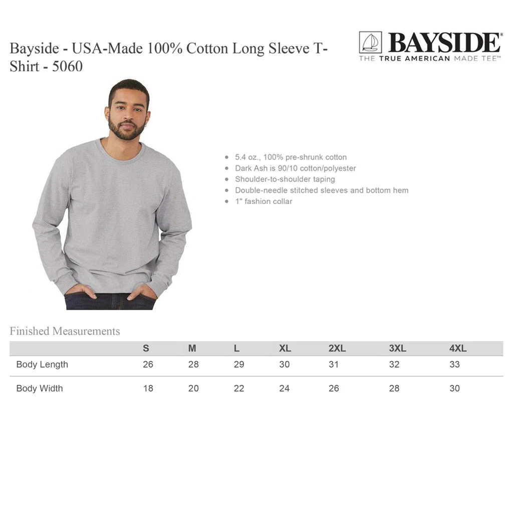 Printed on Bayside 5.4 oz., 100% pre-shrunk cotton