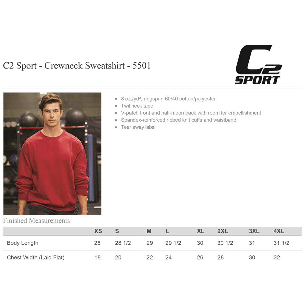 Printed on C2 Sport ringspun 60/40 cotton/polyester