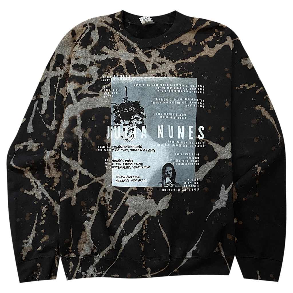 This sweatshirt is custom made and has been handled by the artist. Product image varies by each garment.
