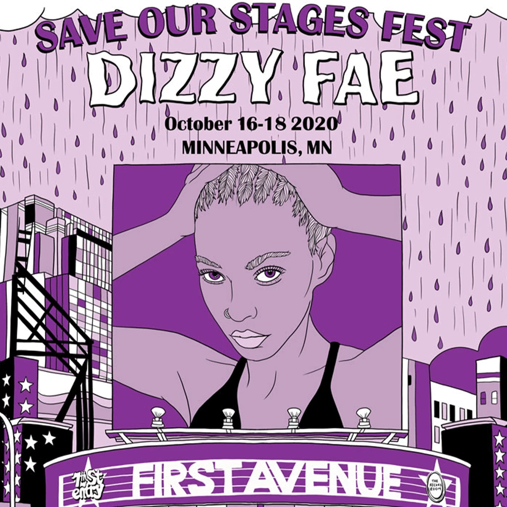 Limited Edition Screen Print Commemorating Dizzy Fae’s Performance at First Avenue for the Save Our Stages Fest.