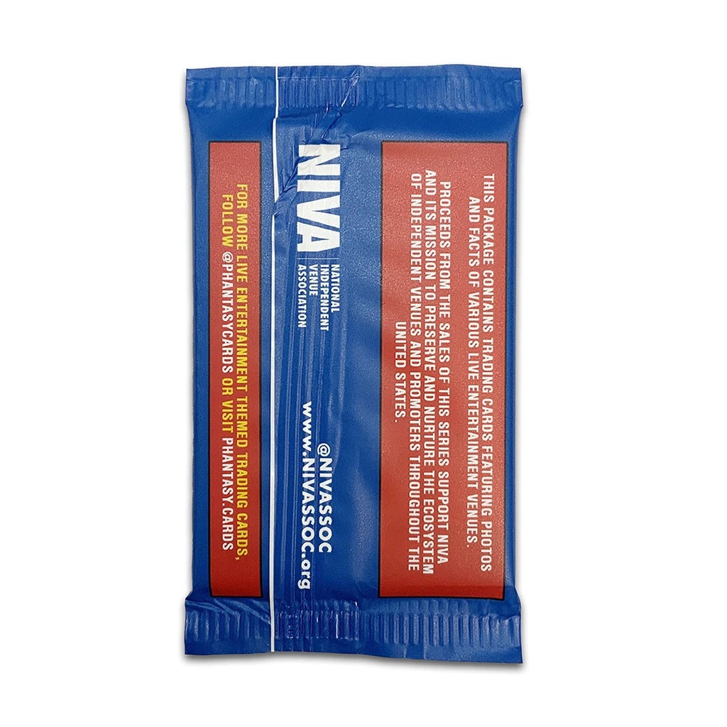 independent venues from across the country, each with their own card. Phantasy Tour selected the venues from a pool of applicants that responded to an invitation from NIVA last fall. Each card in the series features a photo of the venue on the front, venue information on the back, and a foil stamp for authenticity. All venues in the series are members of NIVA.