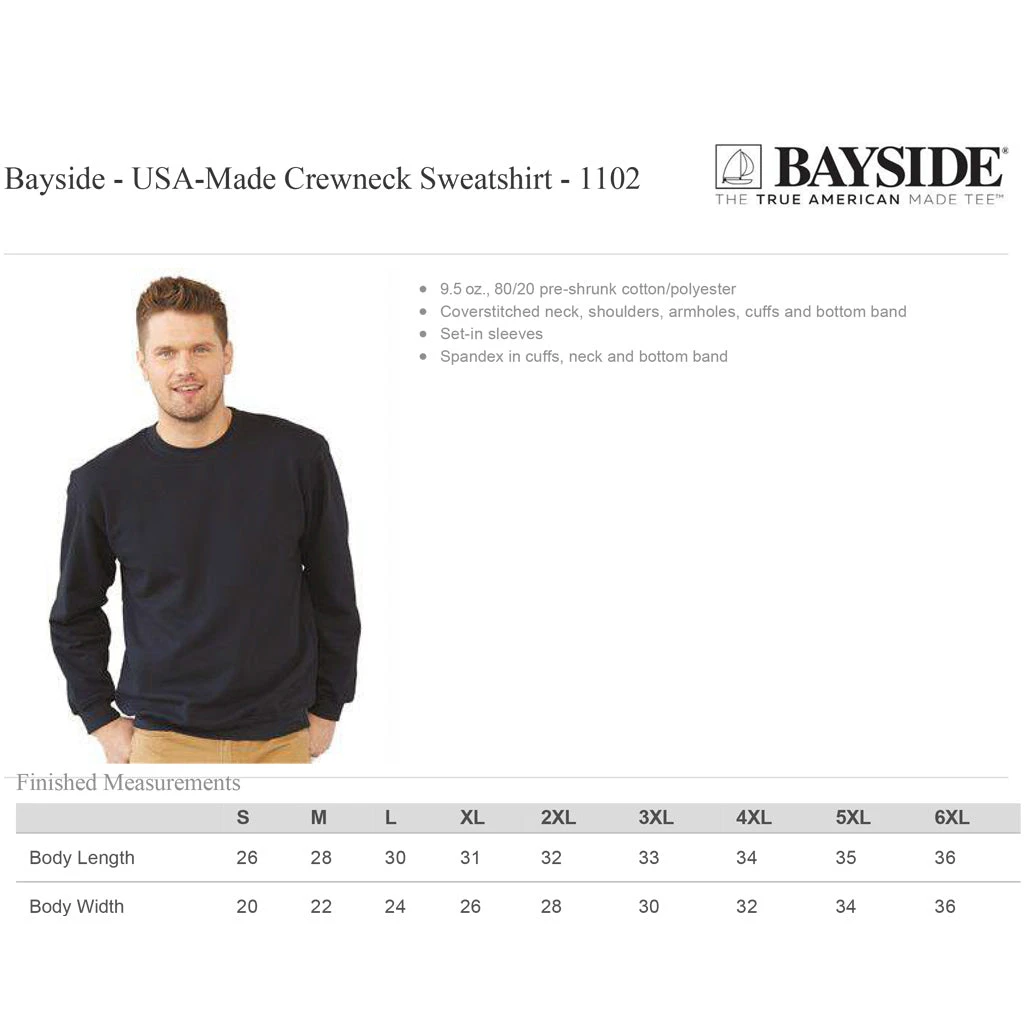 Printed on Bayside made in USA 80/20 pre-shrunk cotton/polyester
