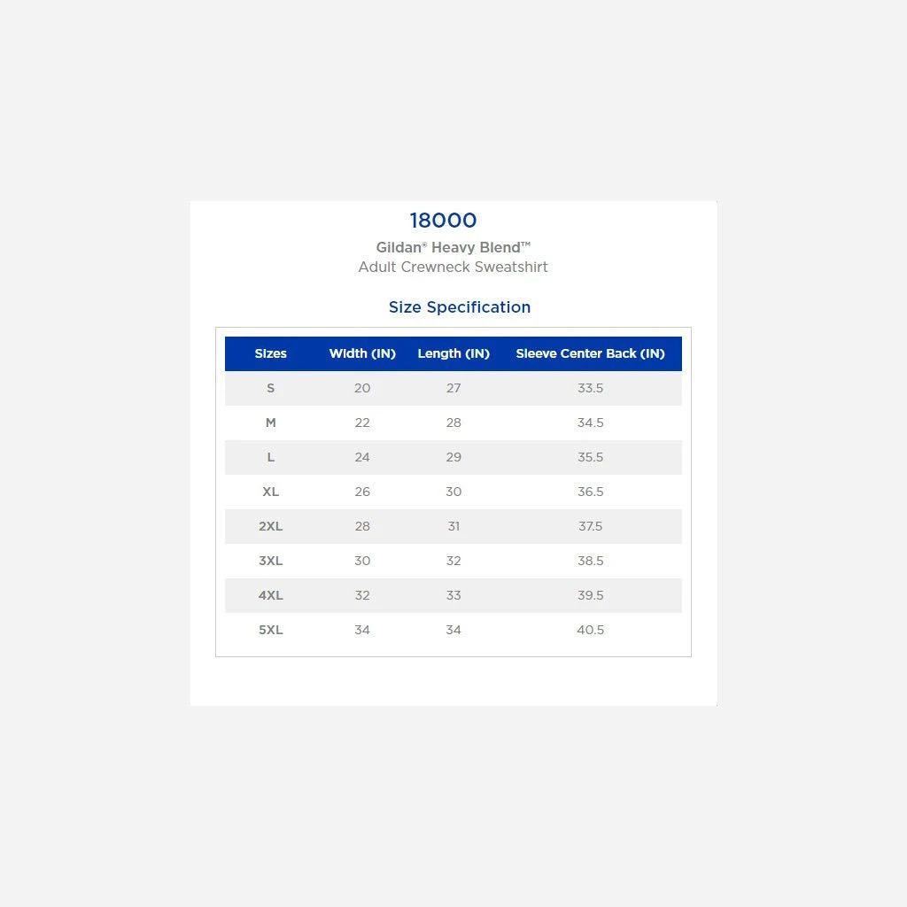 Printed on Gildan, 50/50 poly-cotton blend.