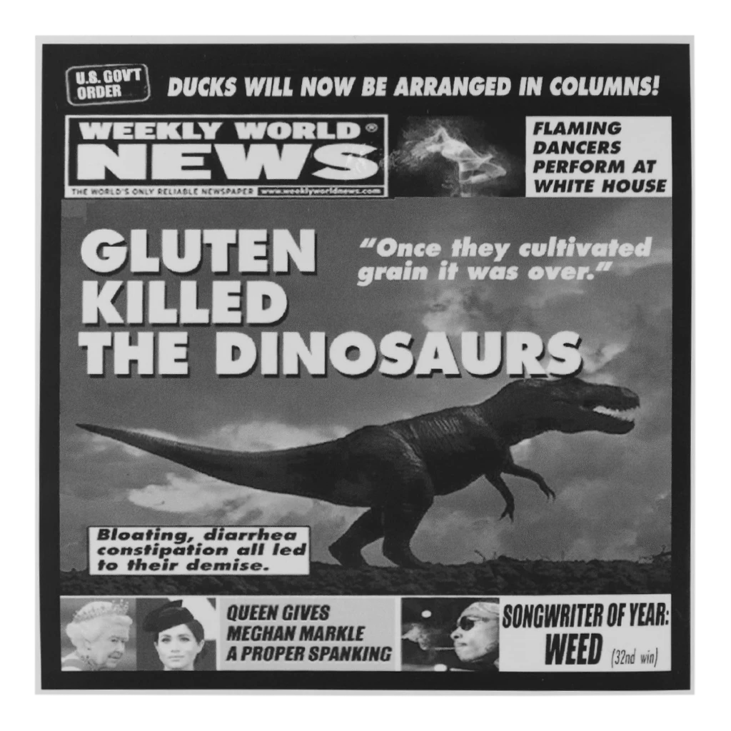 Weekly World News Gluten Killed The Dinosaurs Sticker